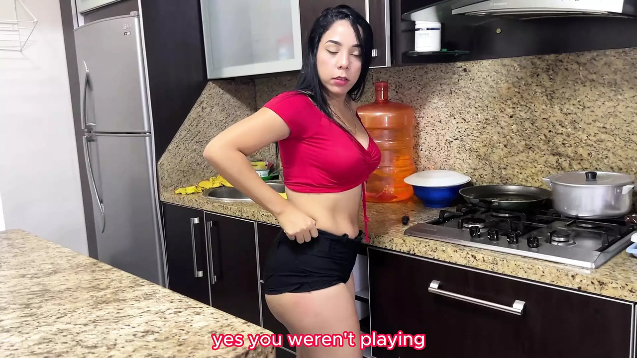 Stunning MILF caregiver in short slutty shorts, showcasing her big ass. She bends over cooking, and lucky husband watches with lust. He slips his hands up her shorts and pounds her hard in the kitchen, while she moans and he cums inside her.