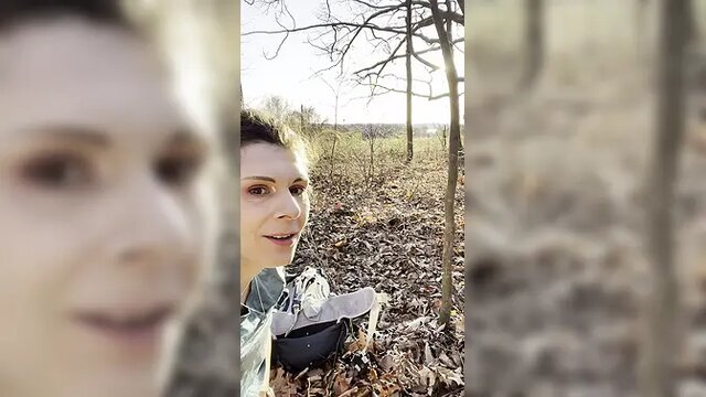 Over 40 amateur slut with a ponytail and nice ass rubs her big boobs while sunbathing in nature. She's happy and authentic as she touches herself and teases her wood with some touching of her pussy.